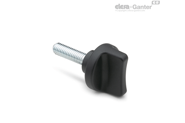Elesa+Ganter wing screws and nuts are available in stainless steel or technopolymer and with colored caps, chamfered flat end or torque-limiting mechanism with maximum torque values of 2N/m or 3N/m.